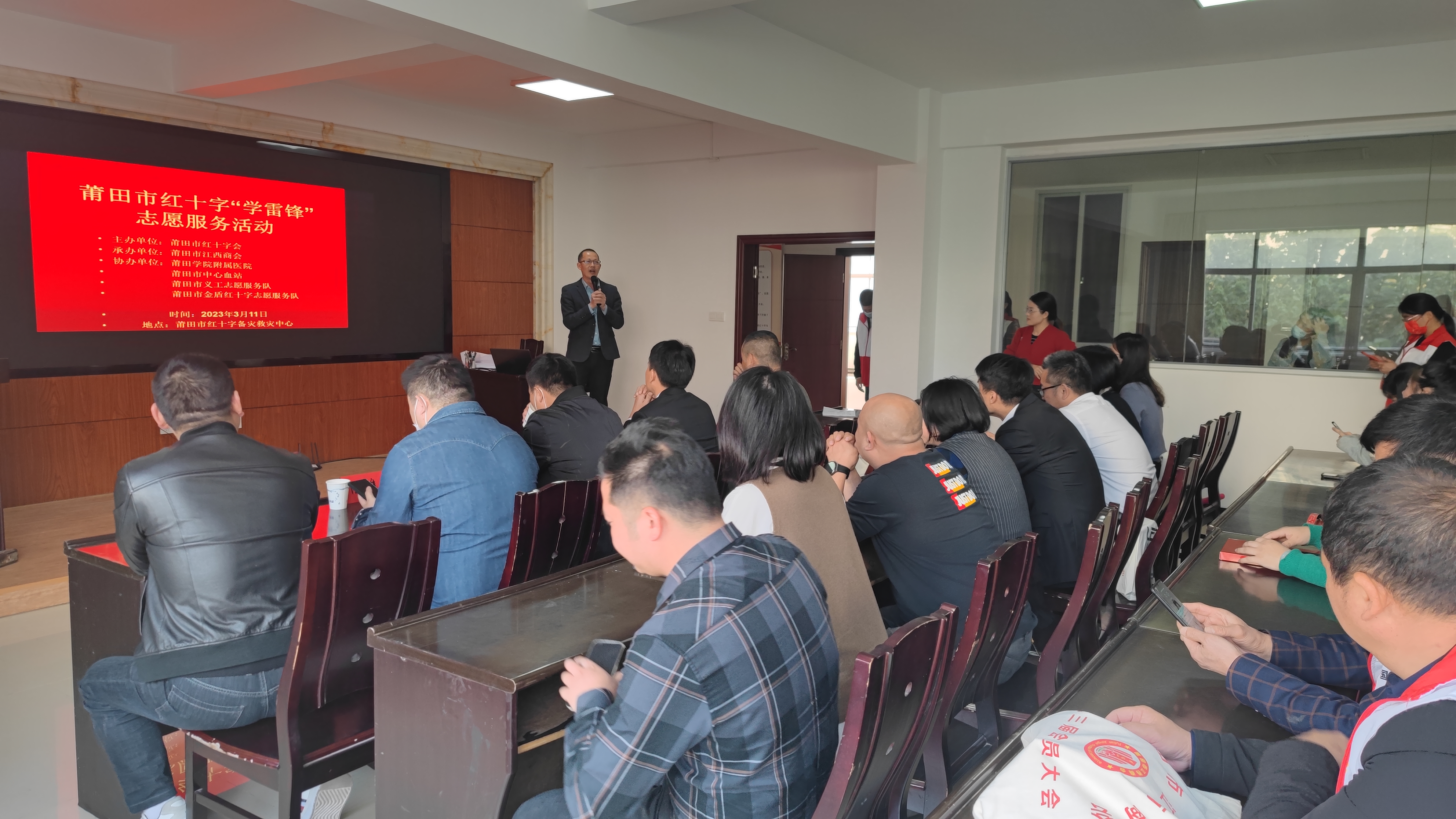11日上午,由市红十字会主办、莆田市江西商会承办、莆田学院附属医院、市中心血站等单位协办的“学雷锋”(“三献”一一义务献血、造干捐献、人体器官捐献)专场在市红十字备灾救灾中心举行。莆田市政协委员、莆田市江西商会会长毛荣和、市红十字会事业发展科科长方恭、市中心血站站长陈金栋出席活动。