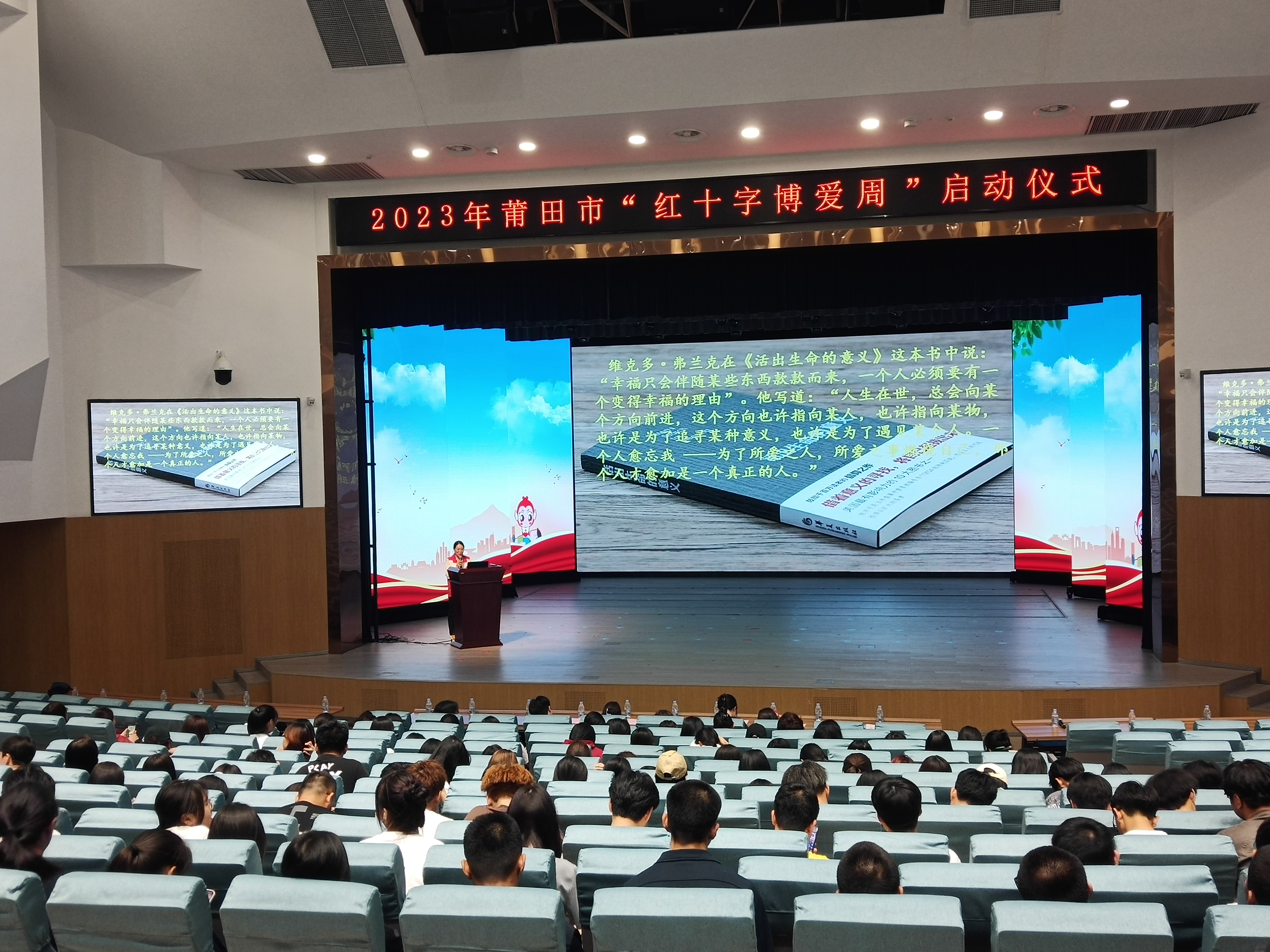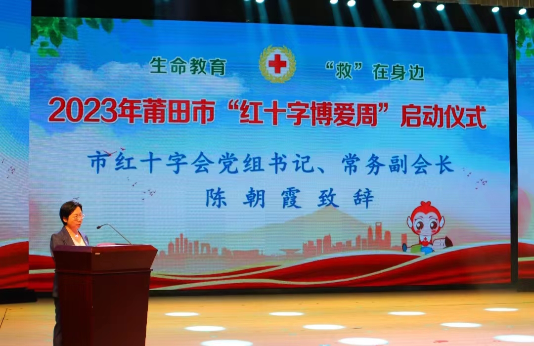 市红十字会党组书记、常务副会长陈朝霞代表主办单位致辞,她指出:2023年,全市红会系统积极发挥党和政府人道领域的助手作用,在服务民生、扶危济困、倡行公益等方面做了许多实事好事,为莆田经济社会发展贡献人道力量。通过举办“红十字博爱周”活动,进一步凝聚社会力量参与红十字事业,共同聚力弘扬善举、造福人类的崇高事业。