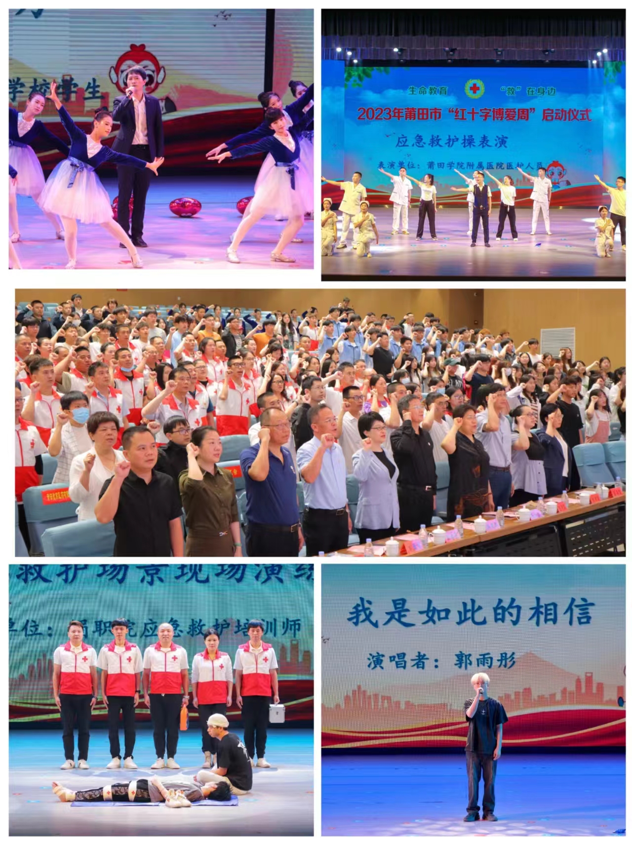活动在歌伴舞《生命的接力》、应急救护操表演、应急救护模拟场景现场演练等精彩的文艺表演中拉开序幕。现场300多名志愿者全体起立,高举右拳,庄严宣誓红十字志愿者誓词。