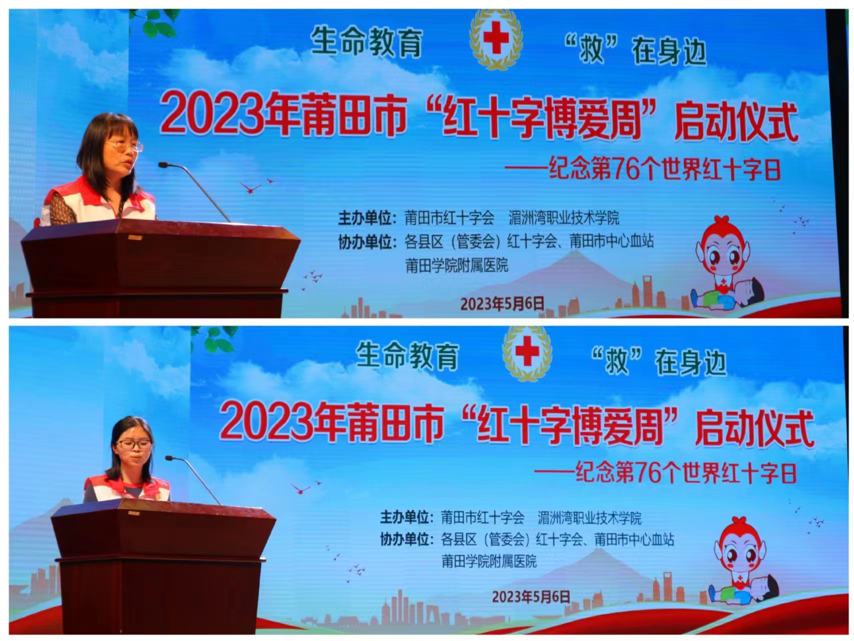 为迎接第76个“世界红十字日”,进一步弘扬“人道、博爱、奉献”红十字精神,在全社会倡导健康、科学、文明的生命理念,助力健康中国和社会主义精神文明建设。5月6日,莆田市红十字会、湄洲湾职业技术学院在湄职院联合举办以“生命教育 救在身边”为主题的“莆田市2023年红十字博爱周启动仪式”。