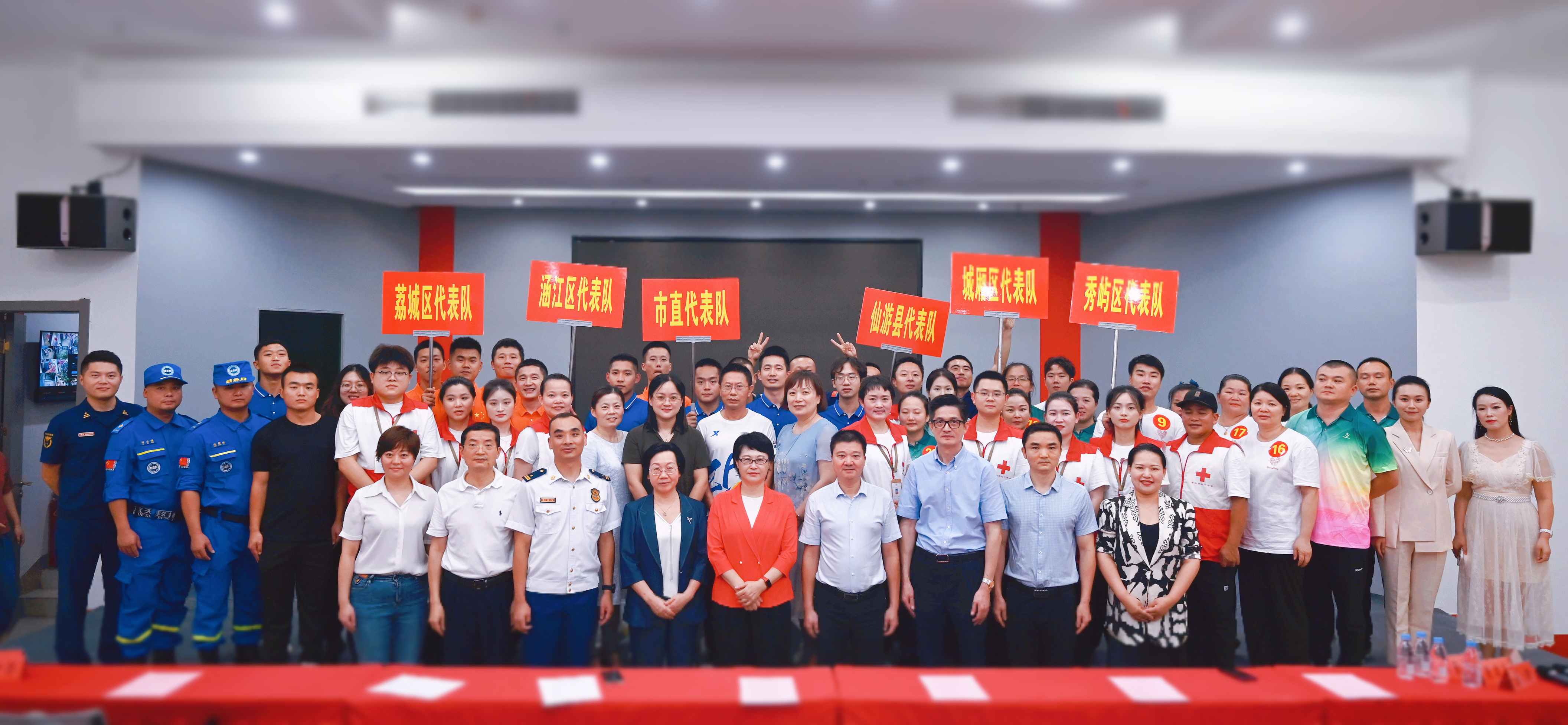 市人民政府副市长、市红十字会会长林韶雯,市总工会党组书记、副主席龚承恕,市红十字会党组书记、常务副会长陈朝霞,市卫健委党组成员、副主任刘金杉,市消防救援支队副支队长张瑜,市红十字会党组成员、专职副会长张伟国,市应急局一级主任科员陈朝辉等领导出席活动并为获奖代表队和队员颁奖。
