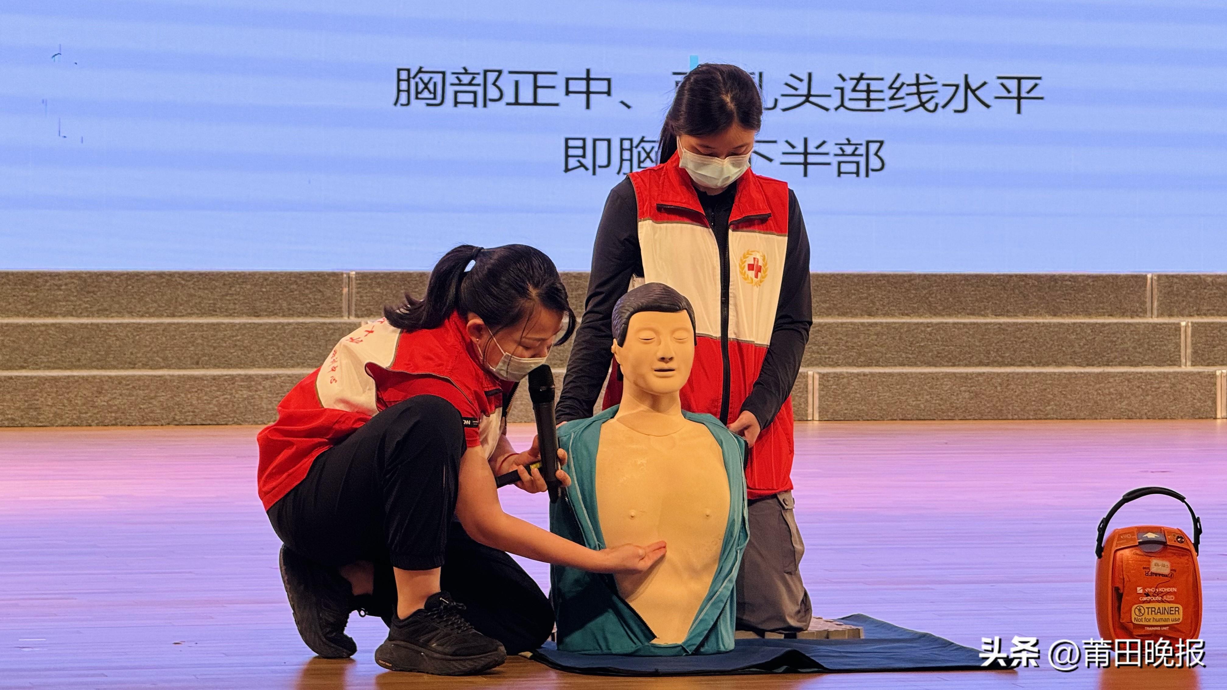 5月14日,市红十字会组织5名专业师资志愿者前往城厢区云峰村幸福家园一期开展应急救护普及活动。现场志愿者利用人体模型示范讲解,为群众教授了心肺复苏、气道异物梗阻、AED使用等急救技能。