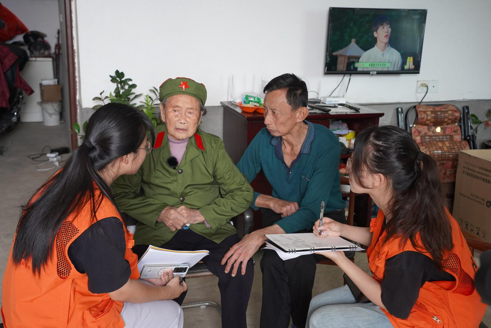 已经耄耋之年的黄贤妹是苏华的亲侄女,13岁时她就和姐姐黄顺英、哥哥黄政贤,跟随苏华的脚步踏上革命的征程。作为一名地下交通员,当年黄贤妹经常冒着生命危险为组织传递信息、运送物资,并在组织开会时负责警戒,无数次出色完成组织交给的任务。当天活动期间,莆田学院“时光小分队”成员来到黄贤妹家中采集红色故事,接受红色教育。2022年5月,莆田学院师生跨学科、跨专业组成“时光小分队”实践调研团,深入莆田革命老区,寻访红色人物,发掘红色故事,通过抢救、记录、整理与制作口述历史文字、图片资料及视频影片,研究、提炼并传播莆田老区红色人物及红色故事。两年多来,已有200多名青年大学生志愿者加入“时光小分队”,他们走进22个革命老区镇、32个老区村,记录和整理了36位革命“五老”的红色记忆,留下大量珍贵的文字和影像资料,并举办了30次全媒体传播活动,反响热烈。