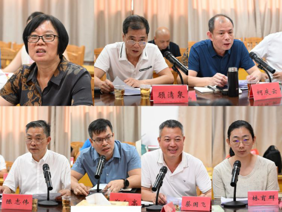 仙游县政协副主席、县老促会会长王建煌(左上图),荔城区原区委常委、常务副区长、区老促会会长顾清泉,秀屿区政协副主席、区老促会会长柯庆云,涵江区政协经济科技和人口资源环境委员会原主任、区老促会副会长兼秘书长陈志伟,城厢区民政局党组书记郑向高,湄洲岛社会事务管理局副局长蔡国飞,北岸民政局干部林育群分别在会上发言