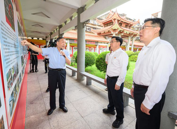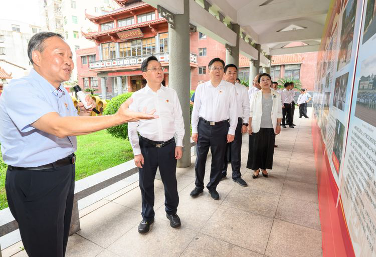 在庆祝中华人民共和国成立75周年之际,9月30日,市委书记付朝阳,市长林旭阳,市人大常委会主任苏永革,市政协主席沈萌芽,市委副书记、组织部部长袁素玲,市委常委、常务副市长陈志强,市委常委、宣传部部长陈惠黔,市委常委、秘书长高宇,市委常委、政法委书记郑加清,市委常委、统战部部长黄珍耀,分管副市长祝海辉等在闽中革命史纪念馆调研参观《走进老区看遗址——莆田市红色文化遗存保护利用摄影图片展》,听取情况介绍,重温革命历史。市老区建设促进会会长王玉宝、执行会长梁国章等参加调研,王玉宝会长作现场解说。