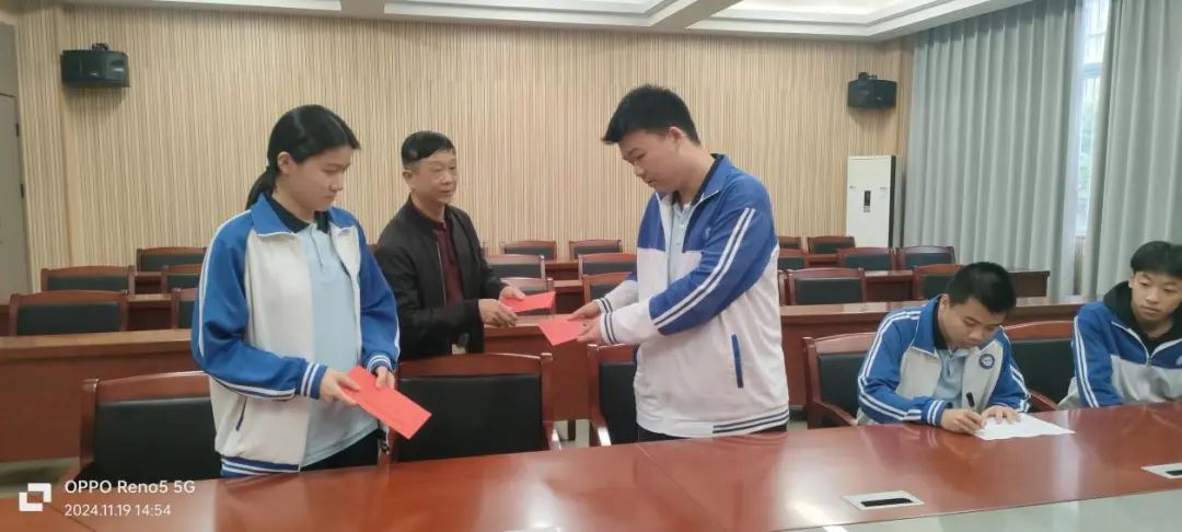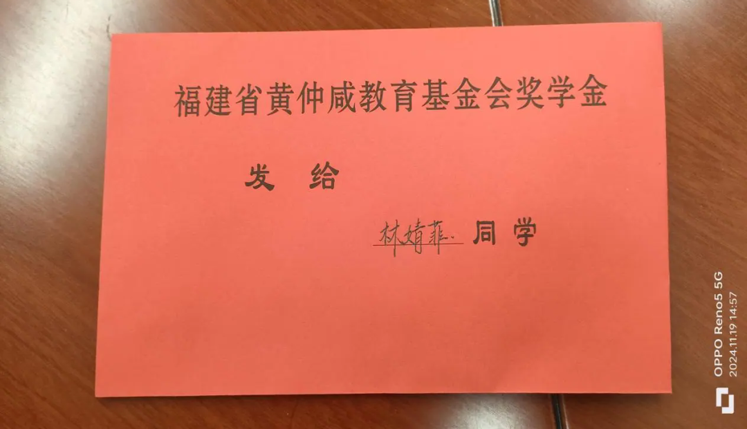 随后,激动人心的奖学金发放环节正式开始。区老促会副秘书长谢争鸣依次为品学兼优的学子们颁发奖学金,每一位获奖学生的脸上都洋溢着喜悦和自豪。此次共有4名学生获得黄仲咸奖学金,每人获得1500的奖学金,这笔奖金将助力他们在求学道路上更加坚定地前行。