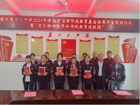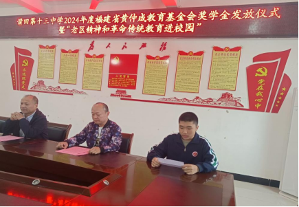人间有爱,岁月不寒。11月20日下午,莆田市第十三中学在综合楼三层会议室举行2024年度黄仲咸奖学金发放仪式。今年,学校共有10名家庭困难、品学兼优的学生获得黄仲咸奖学金,每生1500元。刘春先副校长、林玉洪副书记和工会主席龚德兴、德育处主任王广友和受奖学生出席了会议。
