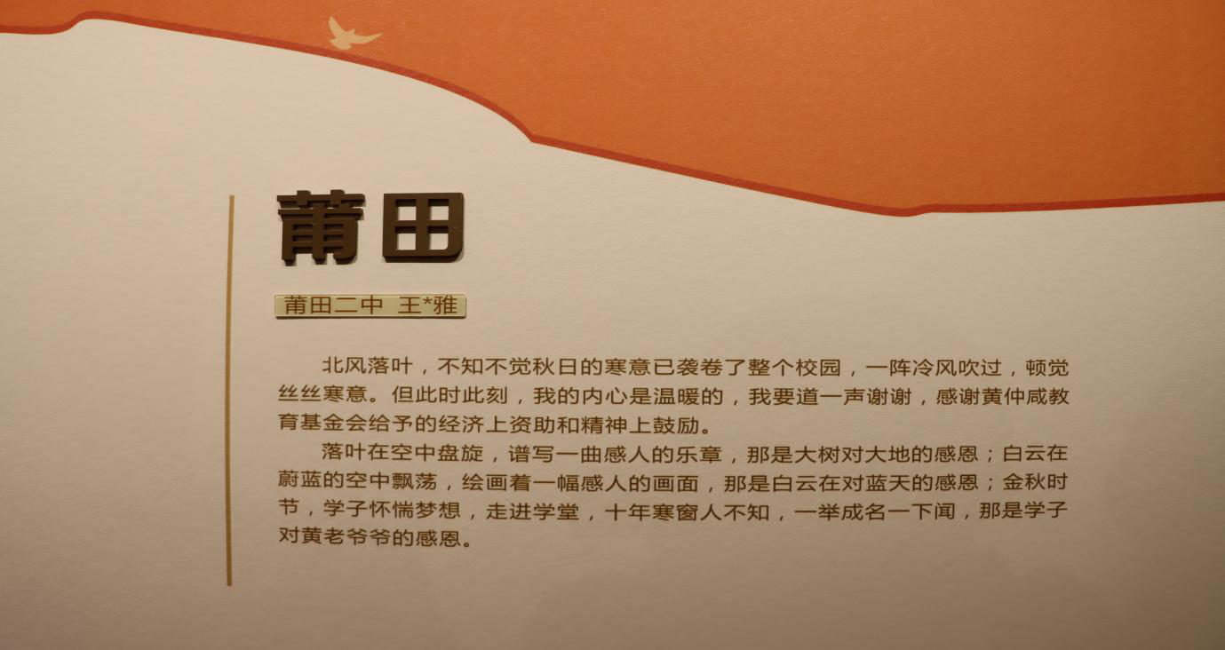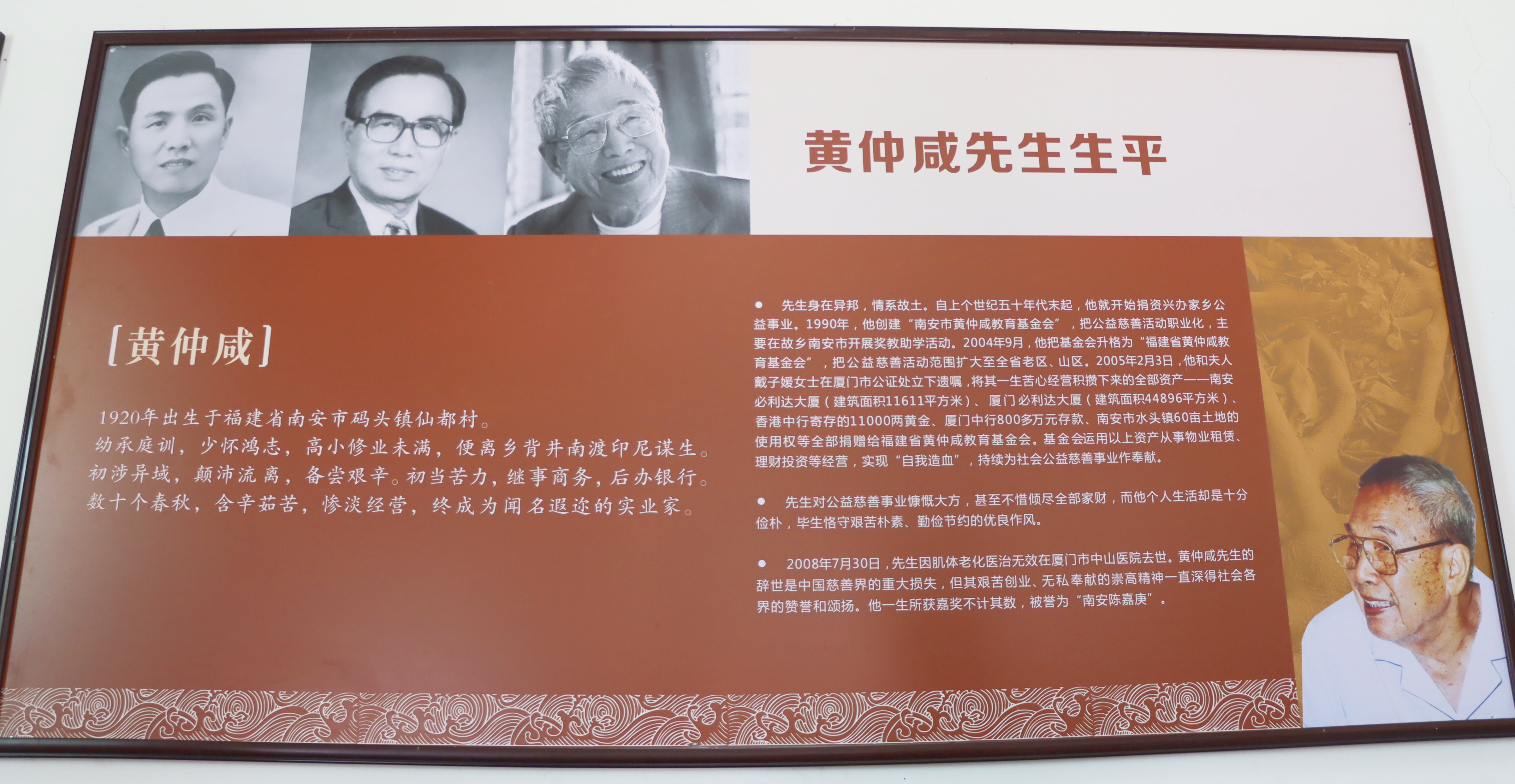 黄仲咸先生(1920.1-2008.7.30),福建籍著名爱国华侨、企业家、银行家、慈善家,独资创建福建省黄仲咸教育基金会,被誉为“南安陈嘉庚”。
