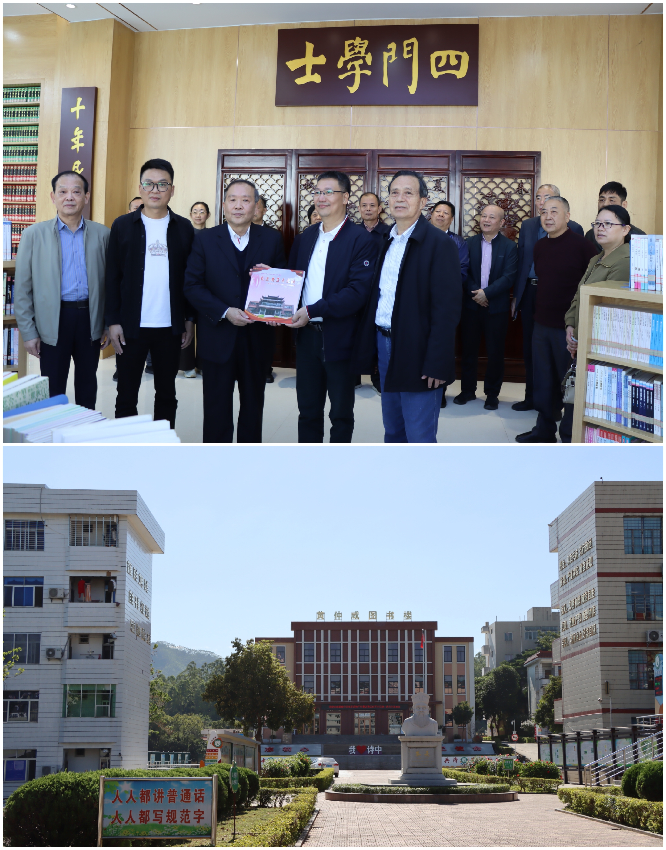 参观黄仲咸先生捐资助建的南安诗山中学,并向黄仲咸图书馆赠送《走进老区看遗址——莆田市红色文化遗存保护利用摄影集》。