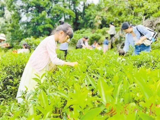 ▲游客在林山村体验茶叶采摘。