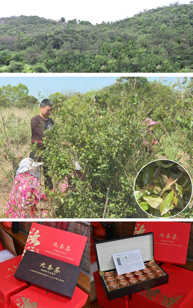 1.九条茶,是莆田特有的茶叶品种,主要生长于仙游县园庄镇东石老区村九龙山,其茶制作技艺源于北宋,明代曾为贡茶。因其独特风味且具有一定的药用价值,成为千年非遗,传承至今。