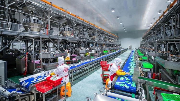 革命老区涵江区福建省红太阳精品有限公司为海带品类等深加工的农业产业化国家重点龙头企业,已覆盖全国80%以上休食海带代工业务。图为海带包装车间。