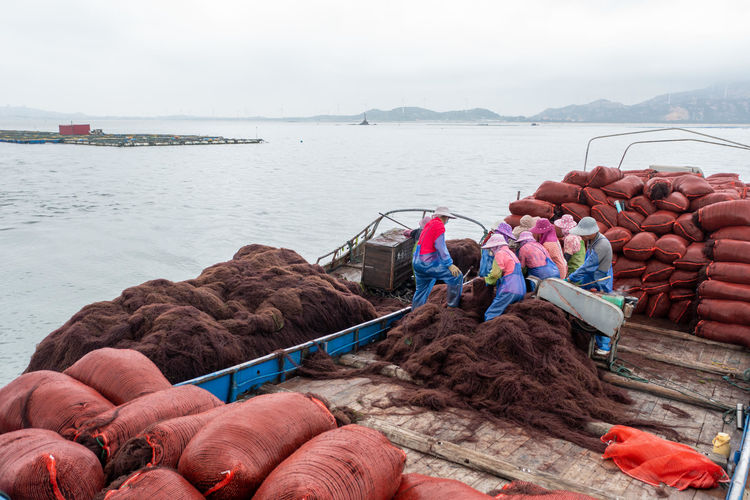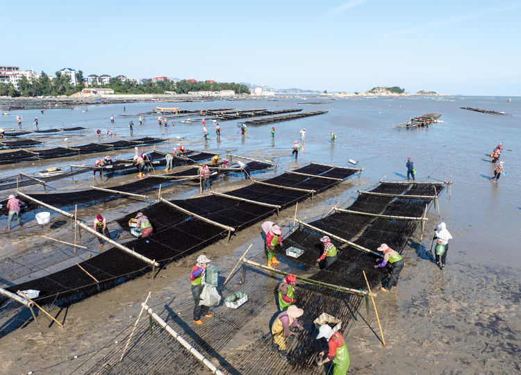 紫菜收获场面。