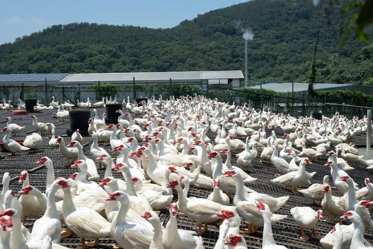 莆田也是番鸭的主产区。图为灵川镇柯朱老区村番鸭养殖场。