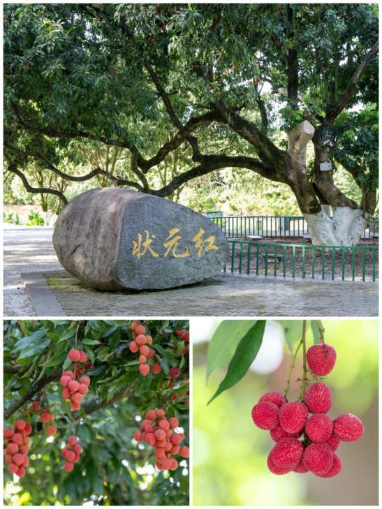 “状元红”为莆田荔枝的代表性品种,由北宋莆田状元徐铎所植。图为位于延寿老区村树龄达900多年的“状元红”古荔树。