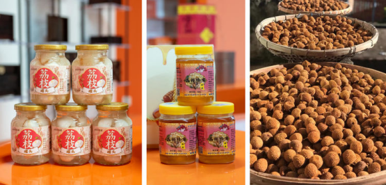 莆田荔枝系列畅销产品——荔枝罐头、荔枝蜜、荔枝干等。
