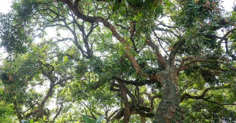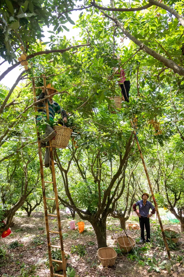 莆田龙眼主要分布在革命老区城厢区、仙游县、荔城区和涵江区等,2024年全市栽培面积近7万亩,覆盖25个乡镇。图为仙游县郊尾镇塘边老区村龙眼林。