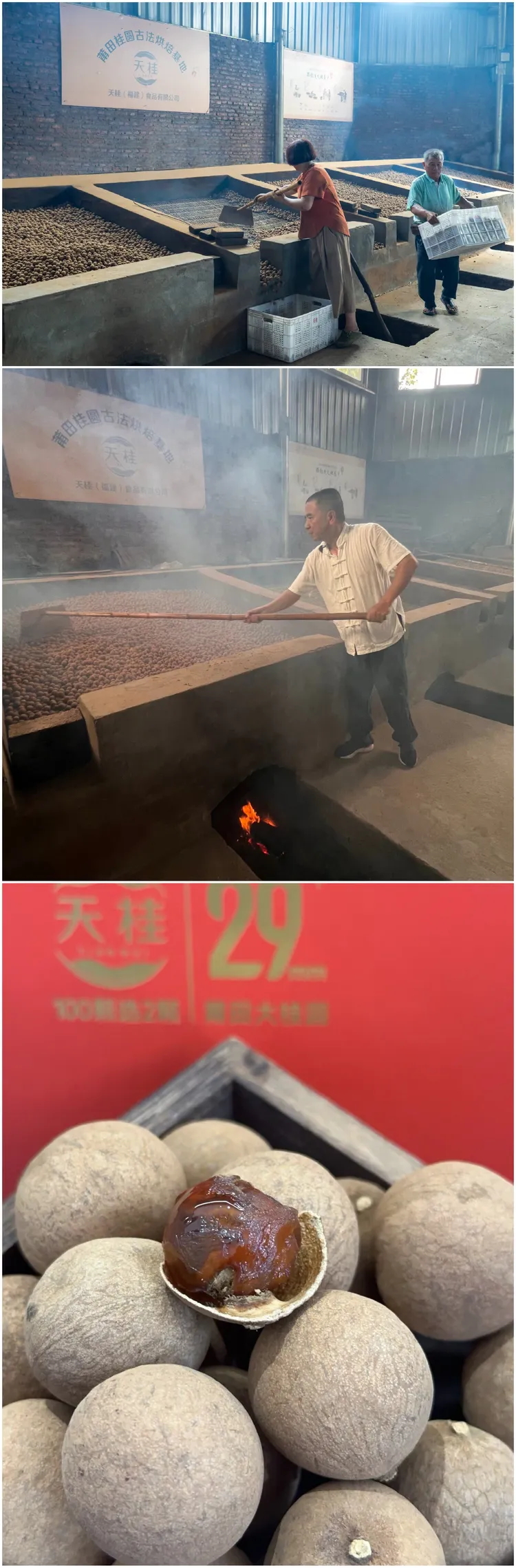 城厢区以木兰溪沿岸桂圆产业园为纽带,以华亭镇埔柳老区村为中心,跨村联建,打造“共富桂·同心圆”桂圆特色产业链。图为埔柳老区村“天桂桂圆”古法烘焙场面。