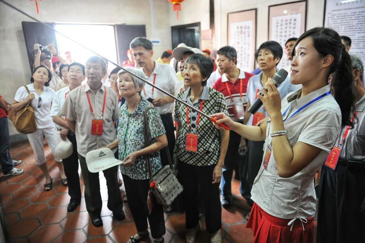 ▲莆田市委市政府于2011年7月隆重纪念闽中第一个中共支部成立85周年,支部创建者陈国柱的故居作为系列活动参观学习点之一,图为讲解员在其故居为参观人员讲述陈国柱革命事迹