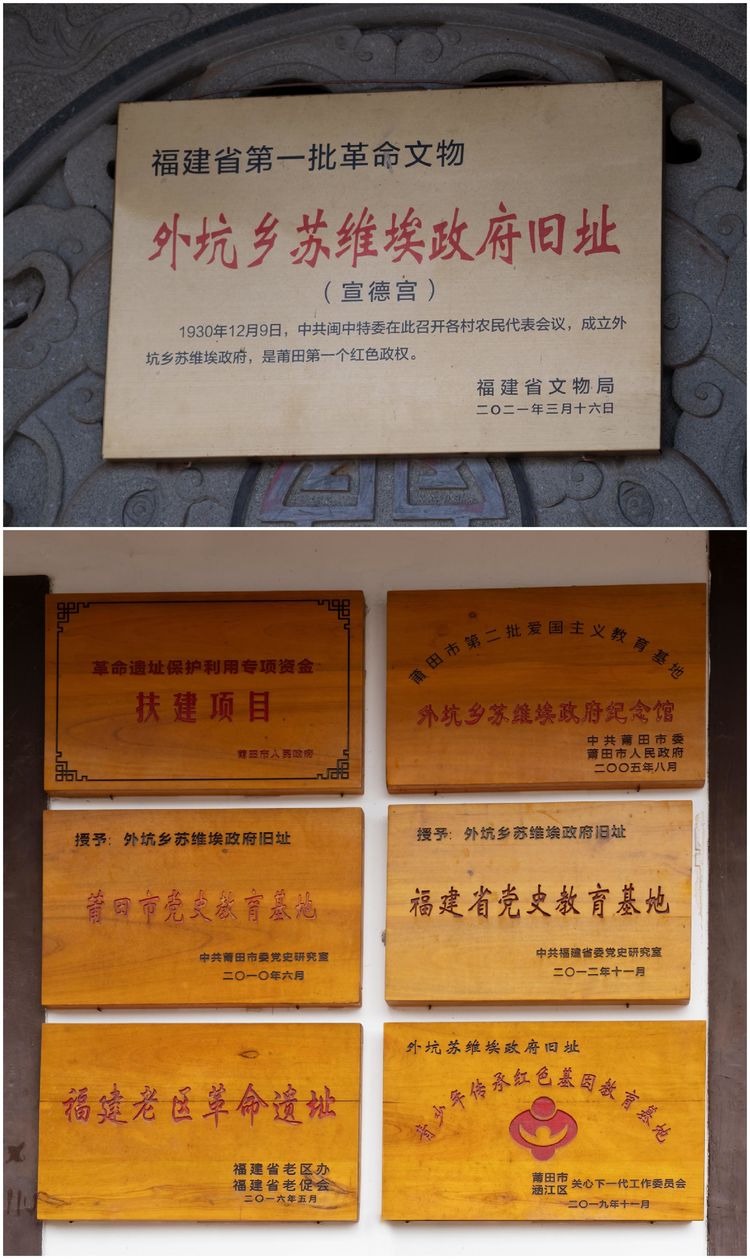 莆田市各级党委政府多次拨出专款对外坑乡苏维埃政府旧址进行修缮保护,特别是近年来,投入200多万元对旧址及纪念馆进行整体提升改造、展陈布展、加强管护,目前列入福建省第一批革命文物保护名录,旧址所在村依托红色资源成为福建省红色美丽村庄试点村。