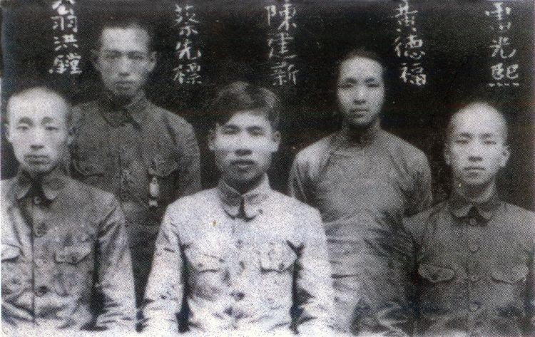 ▲闽中红军游击队部分指战员北上抗日前在福州洪山桥合影,后排左一为雷光熙烈士(由市委党史方志室提供)