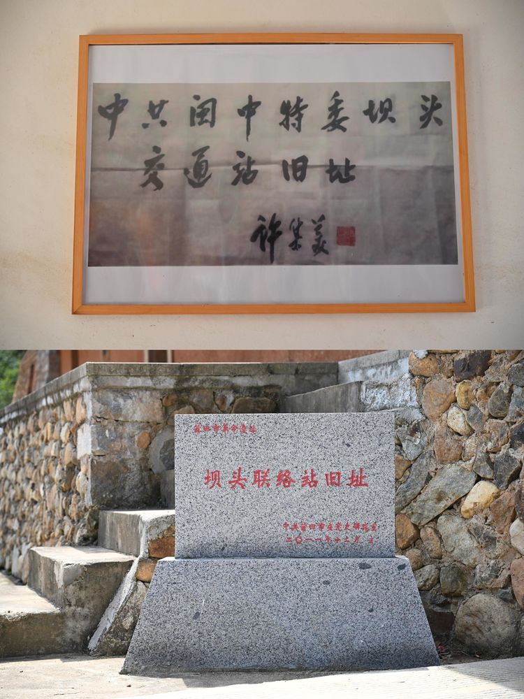 ▲立碑保护,闽中革命老同志,省政协原副主席、省老促会原会长许集美为坝头联络站旧址题字