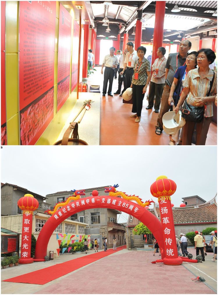 ▲莆田市委市政府于2011年7月隆重纪念闽中第一个中共支部成立85周年,闽中游击队珠江中队旧址作为系列活动参观学习点之一,上图为参观人员观看旧址展陈馆
