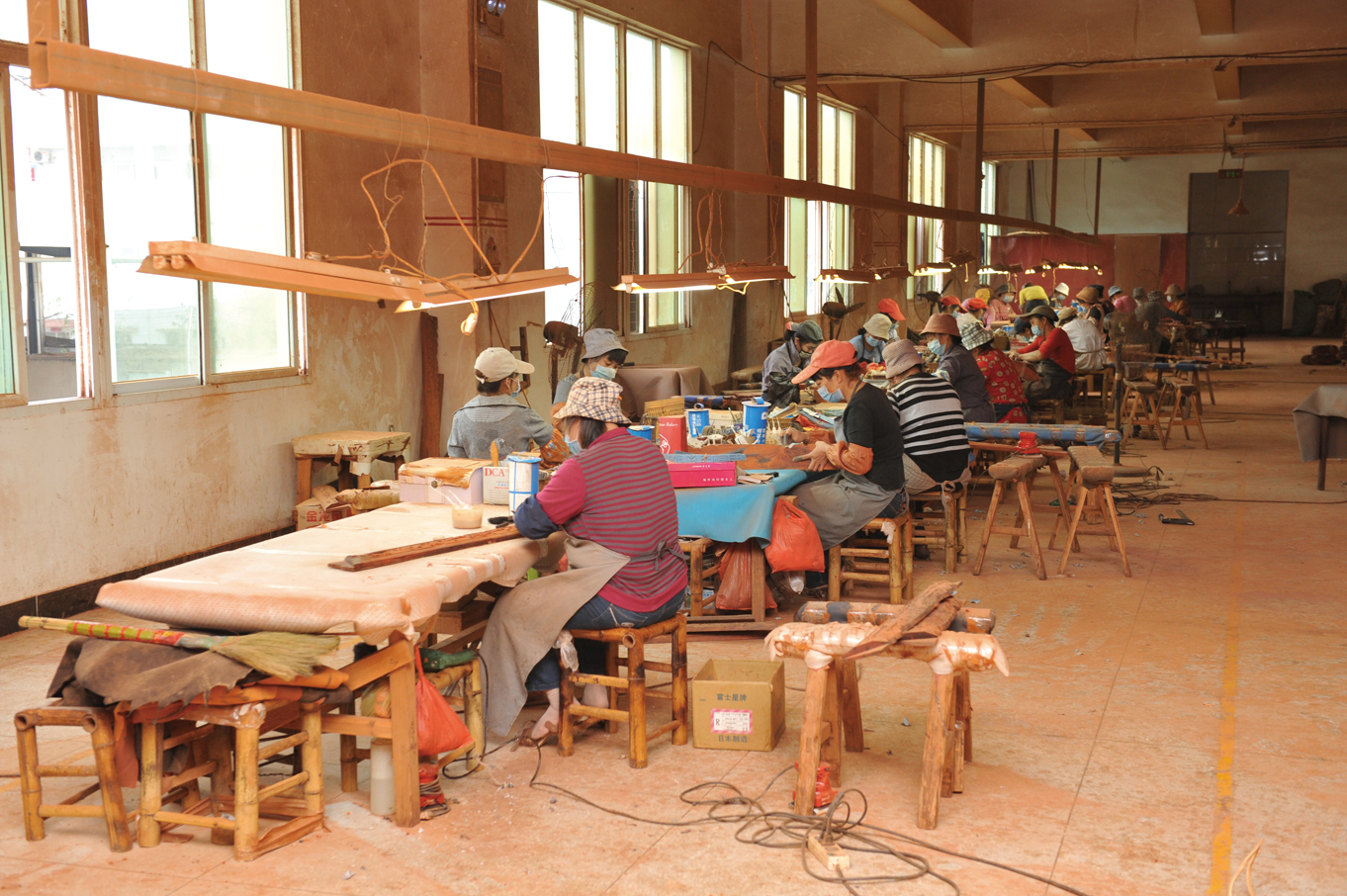 木雕特色产业生产车间一角