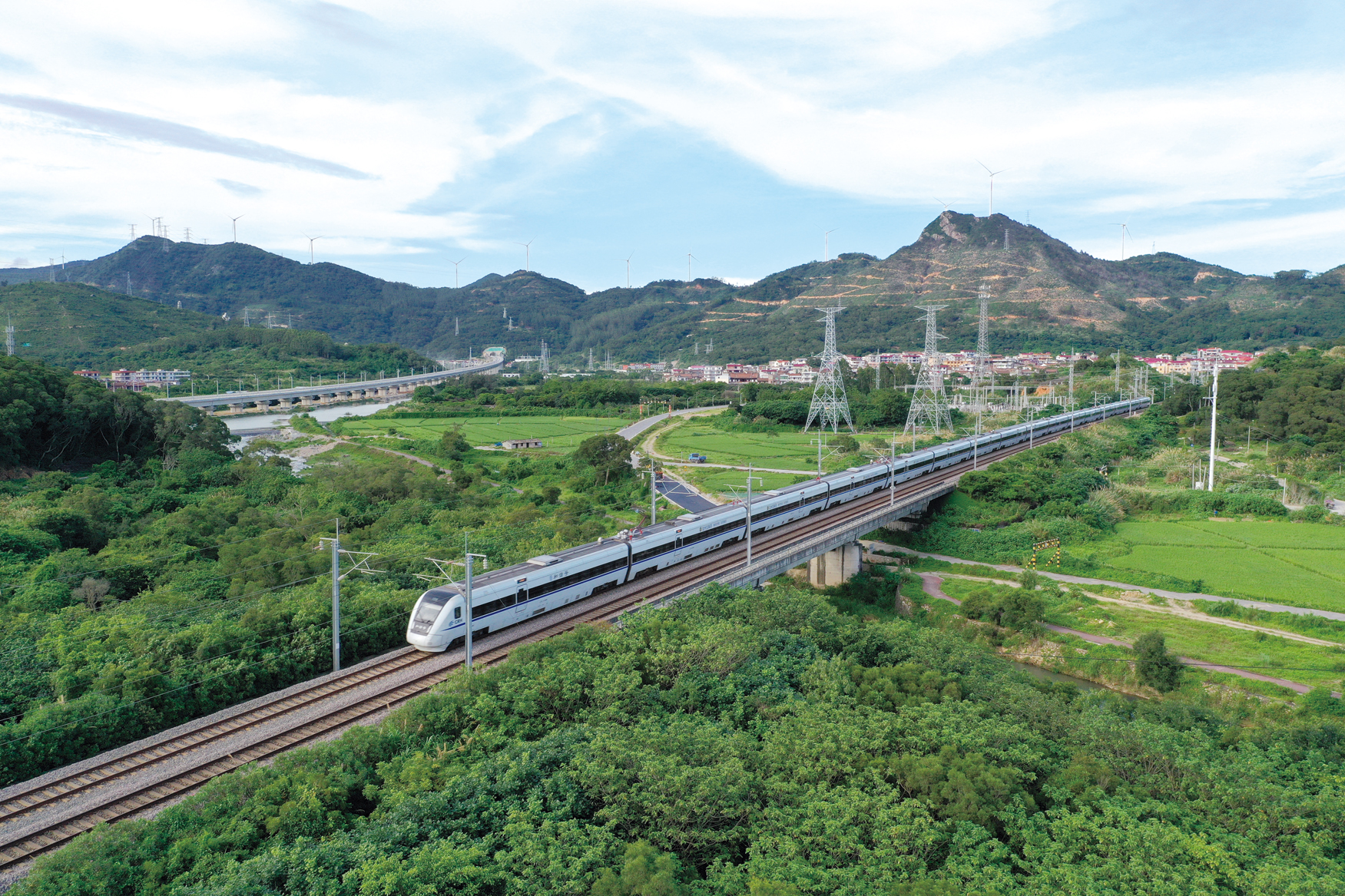 高铁从乡村穿越而过,与乡村田园相映,构成一道美丽的乡村画卷
