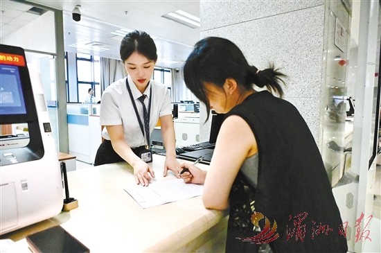 图为企业代办员在市行政服务中心只填一张表就能办理业务。 全媒体记者 杨怡玲 摄