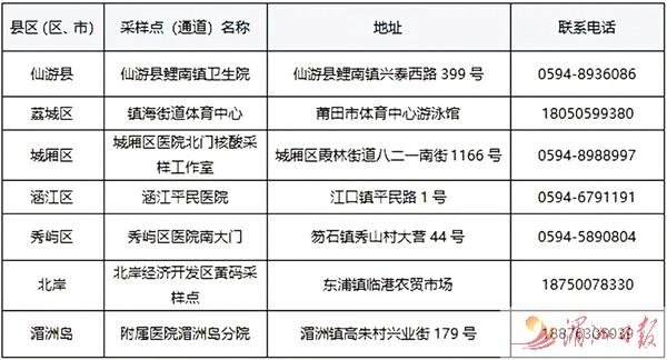 答:莆田市黄码人员核酸检测采样点(采样通道)