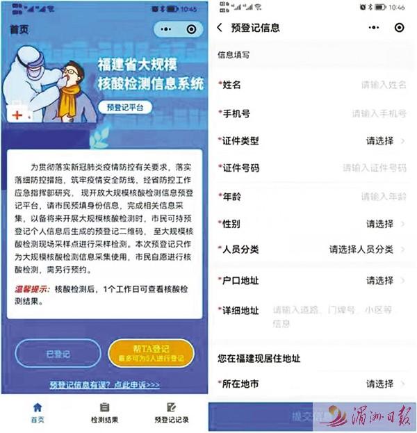 答:全省大规模核酸检测系统已开通预登记微信程序,请广大市民主动登录系统,提前完成个人信息登记工作。