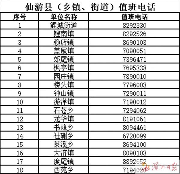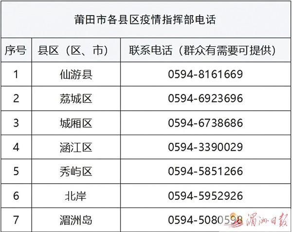 仙游疫情防控指挥部(0594-8161669),或各乡镇值班室(见附表)。
