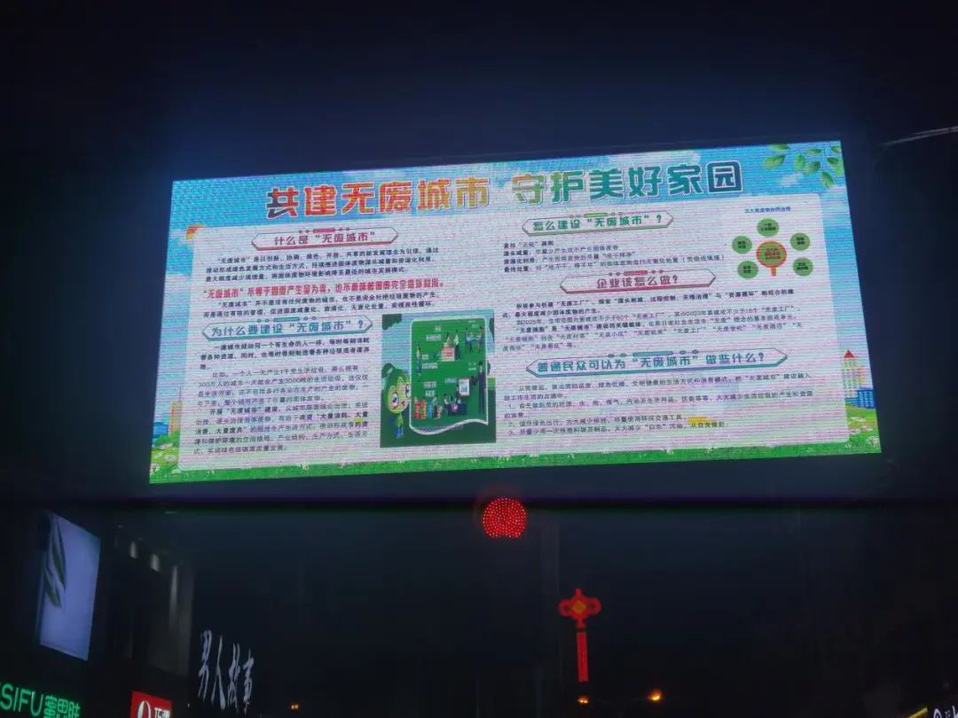 黄石镇充分利用宣传栏、电子显示屏等宣传阵地的作用,在黄石镇政府的LED屏上滚动播放垃圾分类宣传标语,在电子显示屏上科普“无废城市”相关知识。