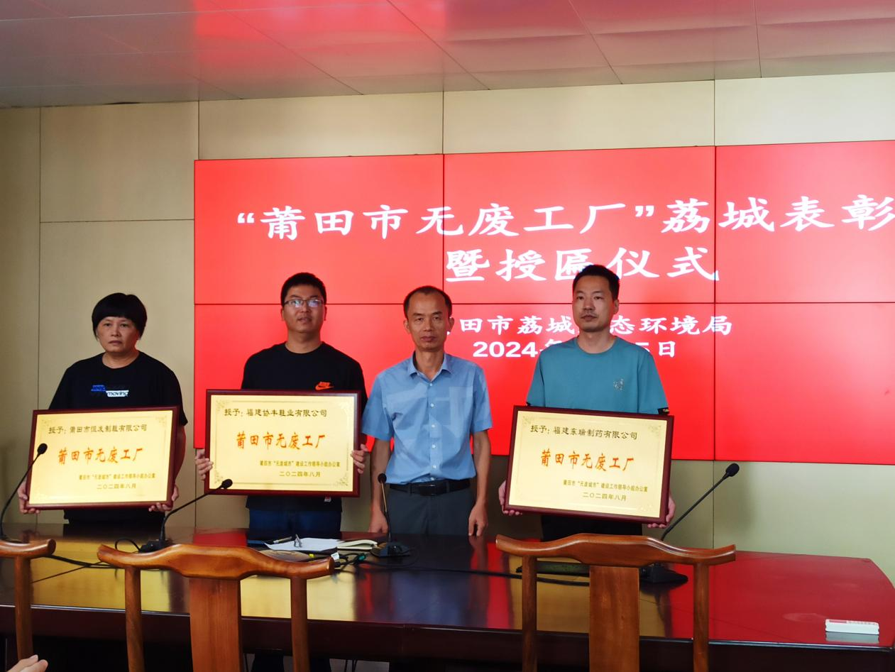 8月15日,荔城生态环境局举办“莆田市无废工厂”荔城表彰会暨授匾仪式,福建东瑞制药有限公司、福建协丰鞋业有限公司、莆田市恒发制鞋有限公司3家企业获首批“莆田市无废工厂”荣誉称号。