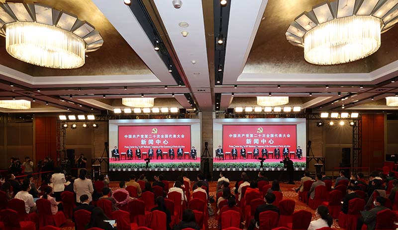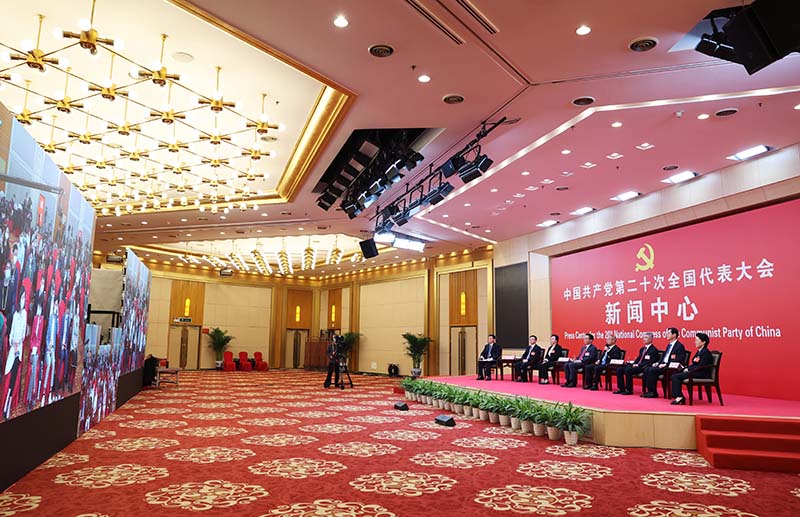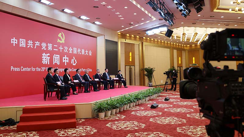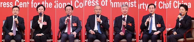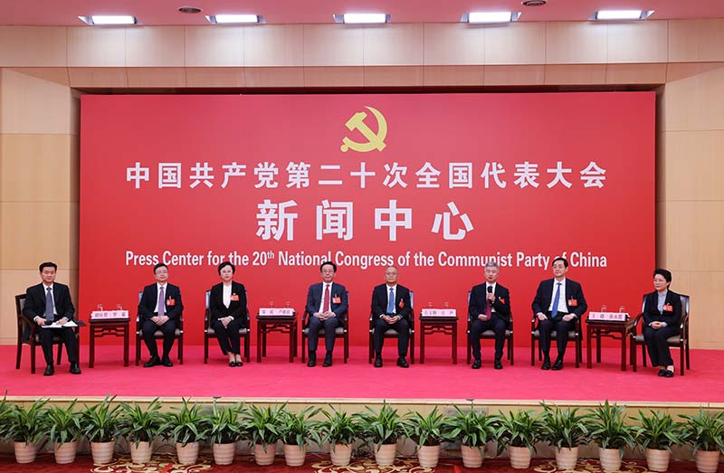 10月19日,中国共产党第二十次全国代表大会新闻中心举行集体采访。重庆、四川、贵州、云南、西藏、陕西、甘肃代表团新闻发言人出席,介绍代表团学习讨论二十大报告情况,并回答记者提问。