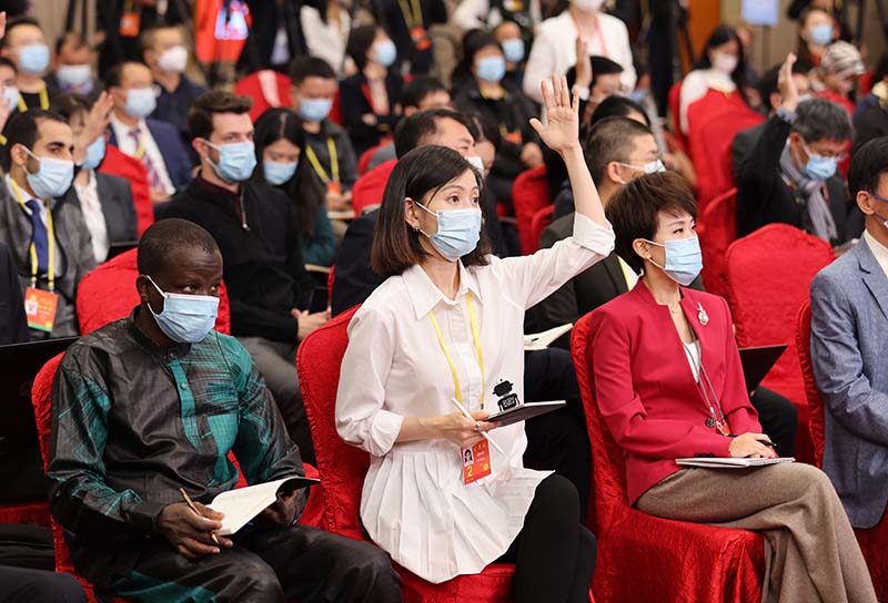 这是记者在分会场举手提问。