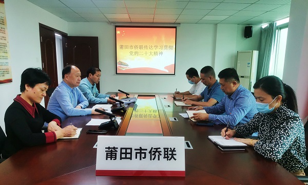 10月28日,莆田市侨联召开全体干部会议,传达学习贯彻党的二十大精神,省委常委会(扩大)会议、市委常委会(扩大)会议精神,研究市侨联学习宣传贯彻党的二十大精神的初步意见。市侨联主席陈锦堂主持会议并讲话。