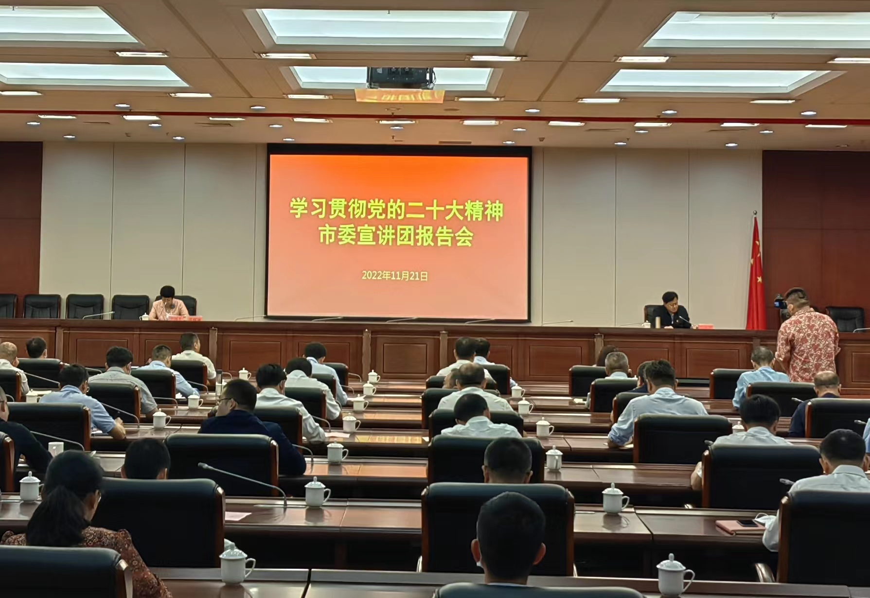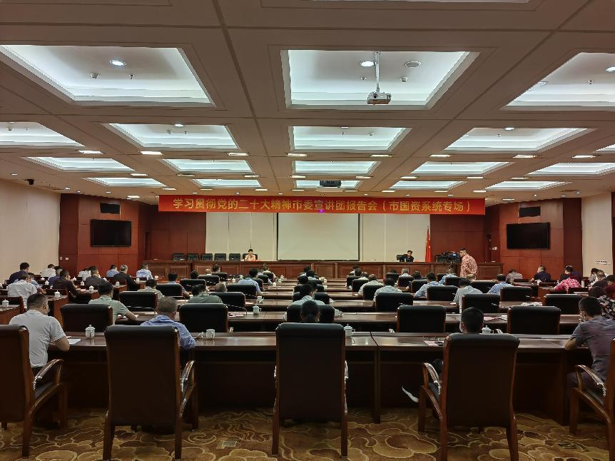 根据市委的统一安排,11月21日上午,莆田市国资委党委在市政南广场一号楼三层会议室举行“学习贯彻党的二十大精神市委宣讲团报告会(市国资系统专场)”,会议由党委书记、主任庄怀冰同志主持,市委宣讲团成员、市委宣传部副部长、市社科联主席方宝昌同志作宣讲报告。全系统共计130多名党员及干部职工参加了宣讲报告会。