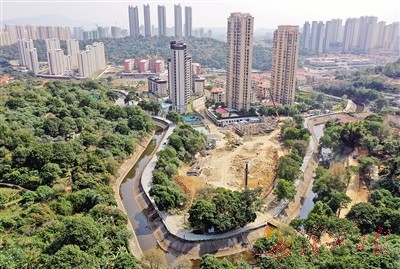 图为航拍下的凤凰“福道”植物园立体停车场施工现场。林罗晓 摄