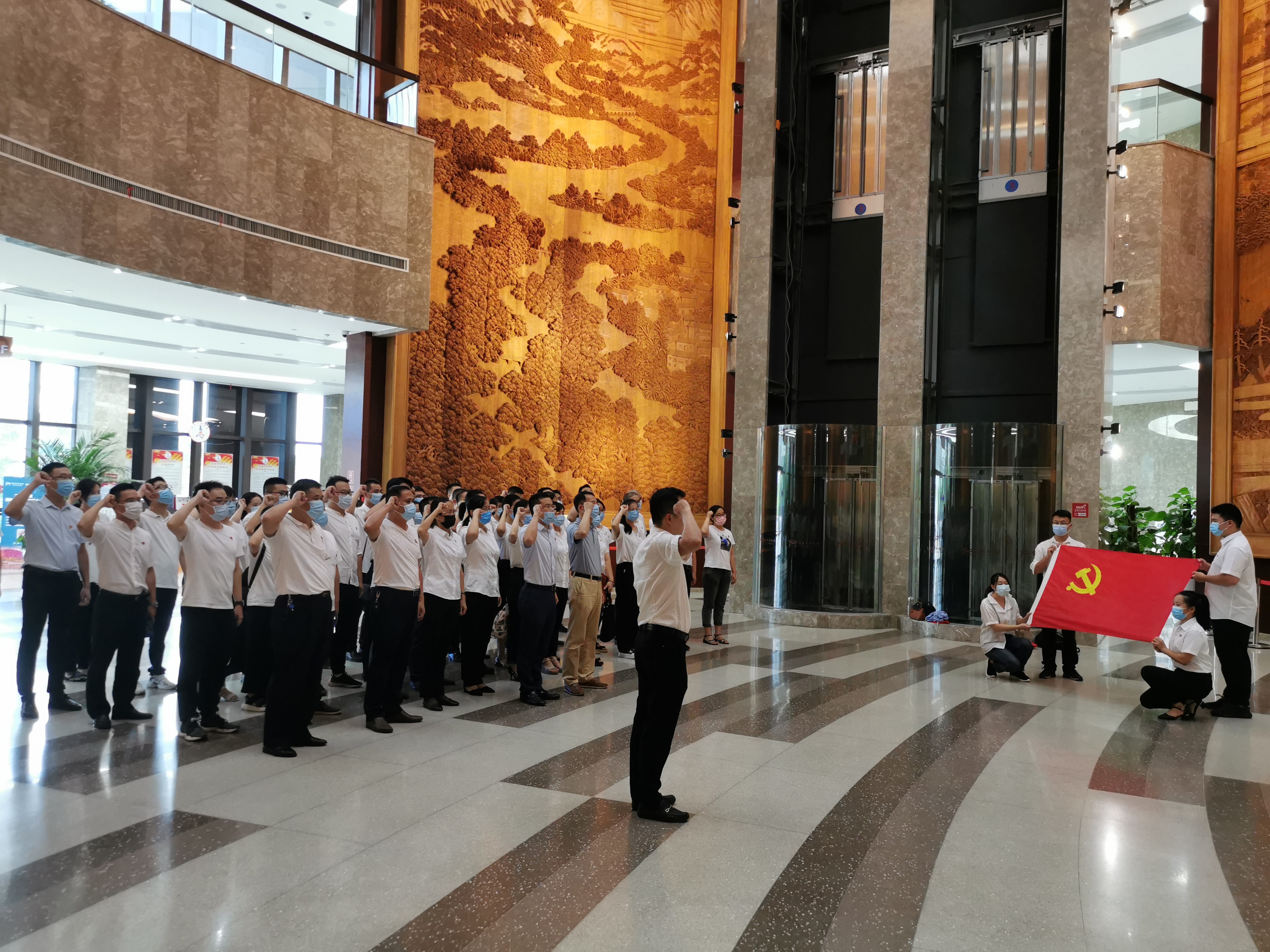活动伊始,全体党员整齐列队,在鲜红的党旗前举起右拳宣誓,铿锵嘹亮的宣誓声响彻大厅,整齐的声音、饱满的热情、昂扬的斗志提醒着每个党员牢记誓言、坚守初心、忠诚信仰,永葆共产党员的政治本色。