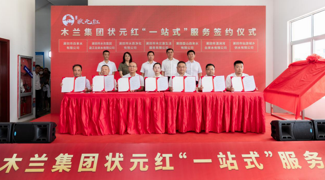 活动进入签约环节,“一站式”服务代表单位与服务对象单位集中签约,标志着多方合作正式开启;随后的示范园区揭牌,宣告木兰集团状元红“一站式”服务示范园区正式进驻闽中污水厂,开启运营新阶段。