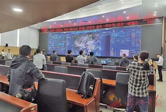 与会来宾在市数字中心参观市大数据调度指挥平台。