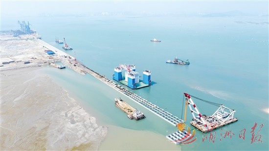 “每件沉箱长23米多、宽13米多、高16米多,相当于一栋6层楼的房子,是海上‘巨无霸’。但项目施工作业面较狭小,影响大型设备操作,我们就像在‘小水沟’里安装大物件。”中交三航局该项目副经理彭锦铭表示,项目部为此优化流程、克服难点、交叉作业。眼下,项目每天有100多名工人施工,预计9月底完成胸墙浇筑、10月底完成后方堆场吹填。(记者 郑已东/文 陈斌/图)