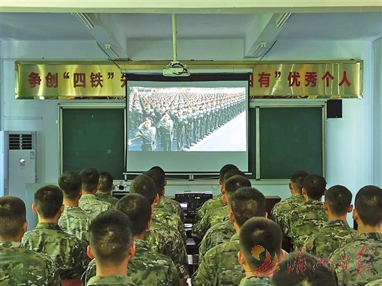 武警第二机动总队某支队组织官兵观看阅兵直播。 杨湛 林基斌 摄