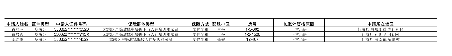 若有异议可在此公示发布之日起5个工作日内向我中心提出申诉,逾期未中诉或申诉缺乏事实与政策依据的,我中心将对上述3户退出对象注销公租房保障资格。电话:0594-7991583