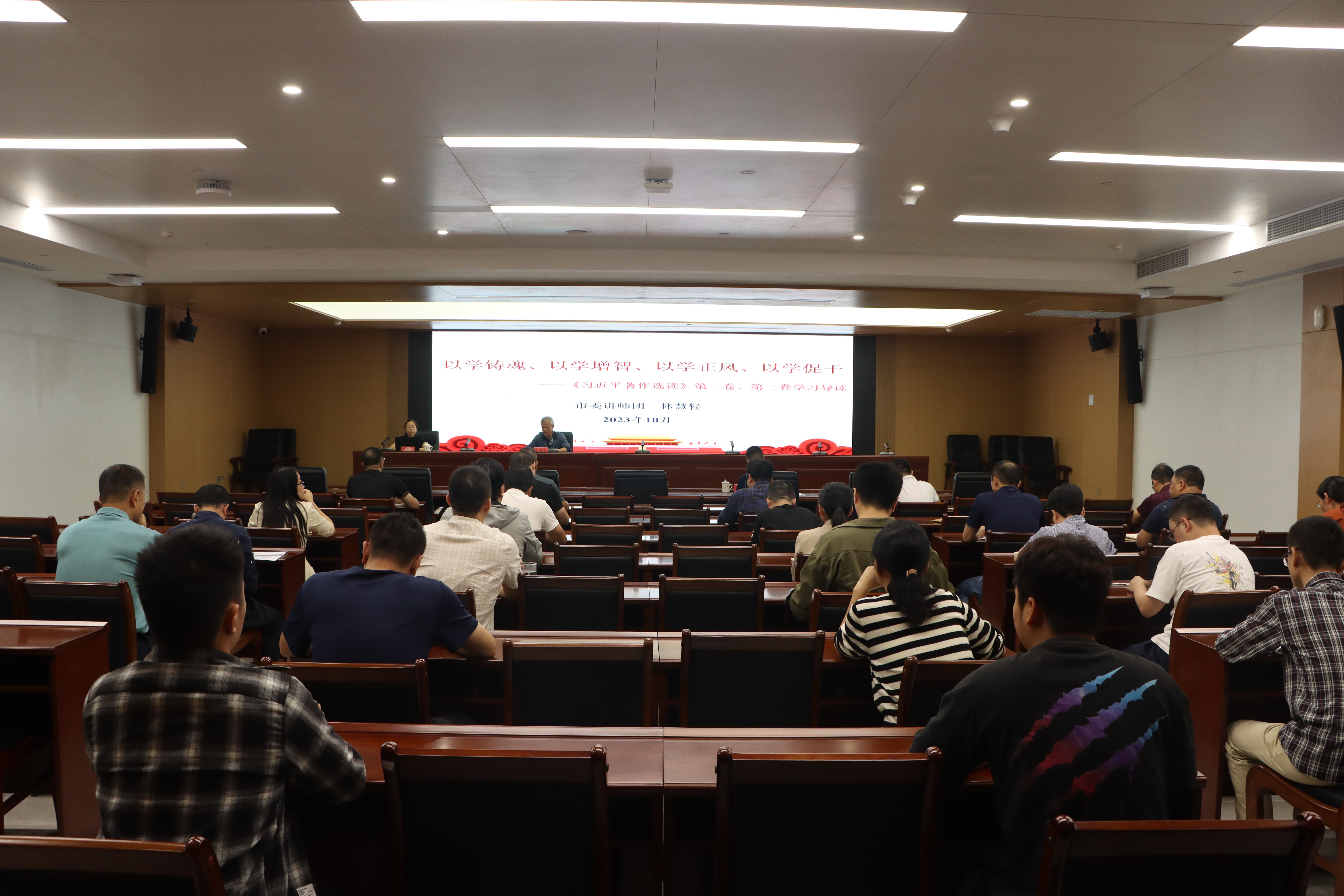 林慧轻以《以学铸魂、以学增智、以学正风、以学促干——〈习近平著作选读〉第一卷、第二卷学习导读》为主题,从“认识中国:中华民族伟大复兴进入关键时期;认识世界:世界百年未有之大变局加速演进;认识党:治国必先治党 党兴才能国强”等三个层面进行了理论阐述和深刻解读。