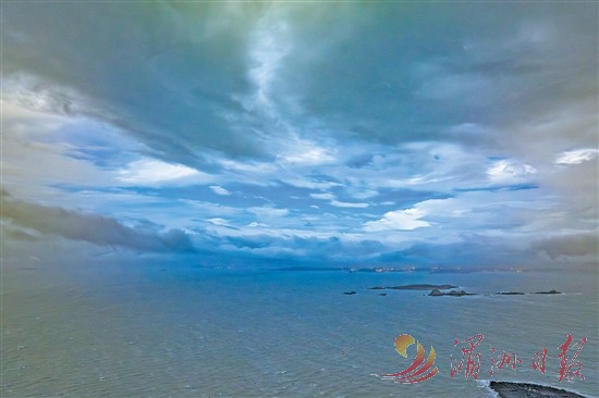 图为昨晚7时10分许记者拍摄到的“台风眼”,南日岛上暂现蓝天白云。蔡昊 摄