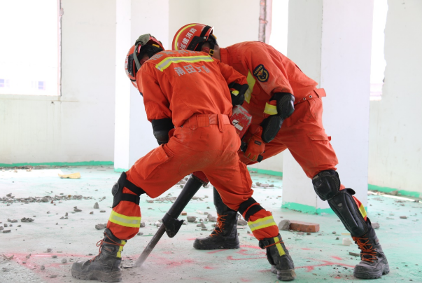 培训期间,立足实战、实兵、实装,围绕建筑坍塌、人员被困等情景开展了实操演练,包含建筑倒塌搜救、狭小空间救援、支撑稳固及向下破拆,横向破拆,横渡救助,斜下救助等多个救援科目。
