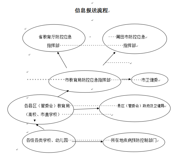 各县区(管委会)和市直所属学校依据“分级响应、属地管理、条块结合”和“谁主管,谁负责”的原则,成立防控工作领导小组或防控应急指挥部,全面负责指挥、协调、管理所属学校(幼儿园)新型冠状病毒感染的肺炎防控有关工作,并将预案和指挥配置上报市教育局。配合当地政府落实联防联控工作措施,及时向上级教育行政部门、同级政府和卫生健康部门报告防控工作情况。市直学校按照属地管理原则实行双重报告制度(即同时报告市教育局和属地县区(管委会)教育局)。
